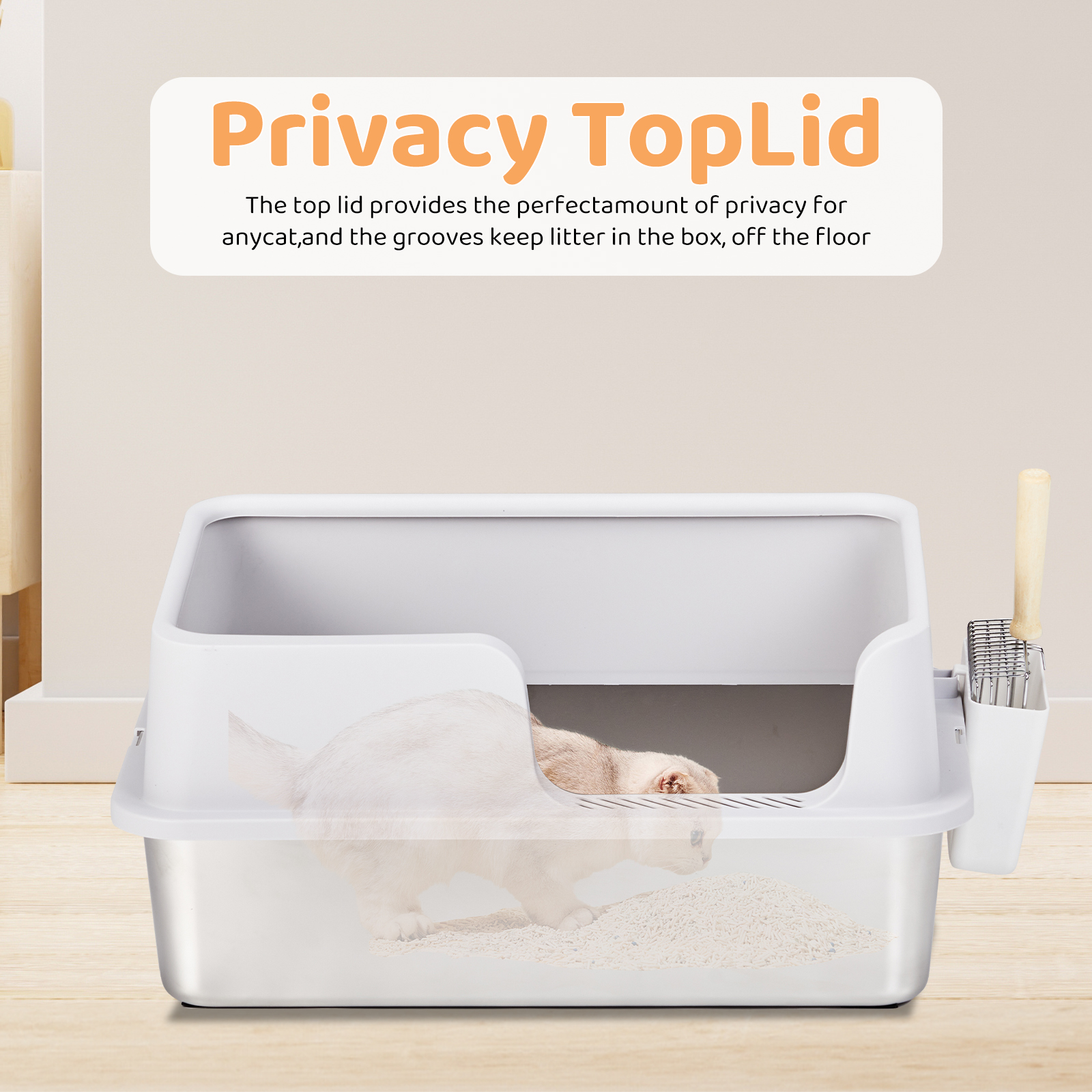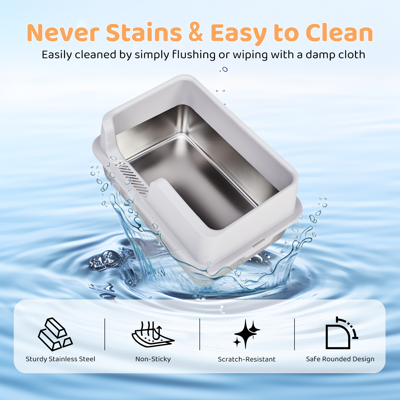 1. Durable Construction: Engineered with a premium stainless steel pan paired with a robust plastic enclosure, this litter box is designed to withstand daily use without warping or rusting. Plus, the reinforced PP frame and secure buckle design guarantee a leak-proof, durable structure.